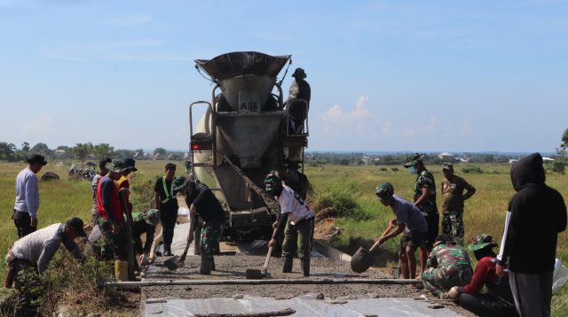 Pengerjaan Jalan Rabat Beton Sudah Mencapai 100 Meter TMMD ke-128 Kodim 1425/Jeneponto Gass Terus.