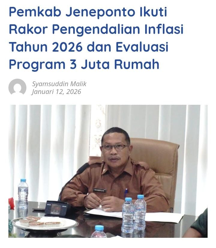 CAKRAWALAINFO.CO.ID, JENEPONTO – Pemerintah Kabupaten Jeneponto mengikuti Rapat Koordinasi Pengendalian Inflasi Tahun 2026 yang dirangkaikan dengan Evaluasi Dukungan Pemerintah Daerah terhadap Program Strategis Nasional 3 Juta Rumah. Kegiatan tersebut dilaksanakan secara virtual melalui Zoom Meeting, Senin (12 Januari 2026), bertempat di Ruang Rapat Sekretaris Daerah Kabupaten Jeneponto.
