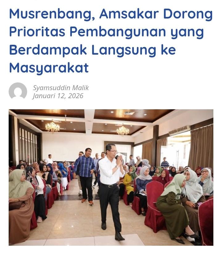 Dalam arahannya, Amsakar menekankan bahwa Musrenbang bukan sekadar wadah penyampaian usulan masyarakat, melainkan bagian dari mekanisme perencanaan pembangunan yang resmi, sistematis, dan berjenjang.