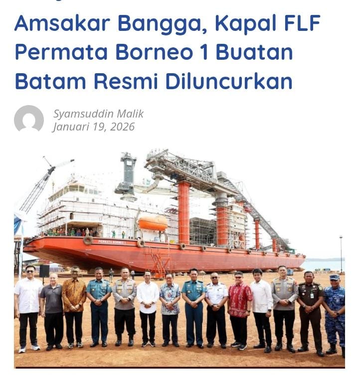 Dalam sambutannya, Amsakar menyampaikan apresiasi dan kebanggaannya atas keberhasilan produksi kapal FLF karya anak bangsa yang sepenuhnya dibangun di Batam. Ia menyebut momen tersebut sebagai catatan sejarah baru dalam industri perkapalan Indonesia.