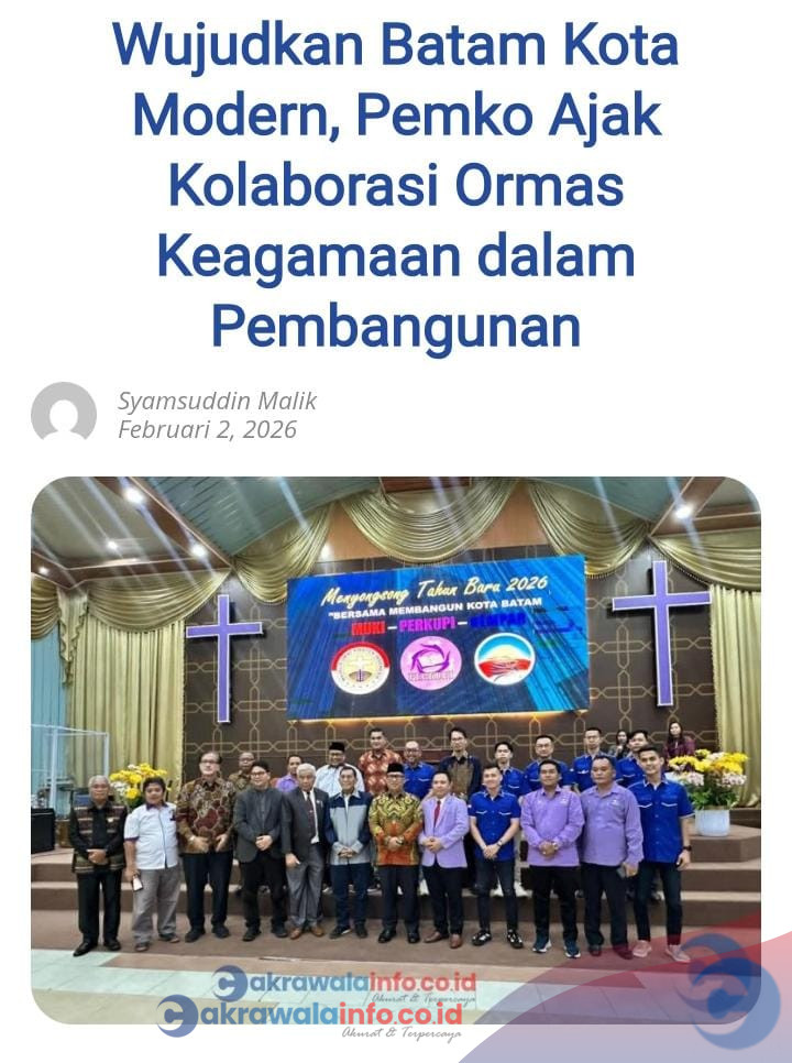 CAKRAWALAINFO.CO.BATAM — Pemerintah Kota (Pemko) Batam menegaskan komitmennya untuk terus merajut kebersamaan dengan seluruh elemen masyarakat demi mempercepat pembangunan kota. Hal ini disampaikan Wali Kota Batam, Amsakar Achmad, dan Wakil Wali Kota Batam, Li Claudia Chandra, melalui Kepala Dinas Komunikasi dan Informatika (Kominfo) Kota Batam, Rudi Panjaitan.