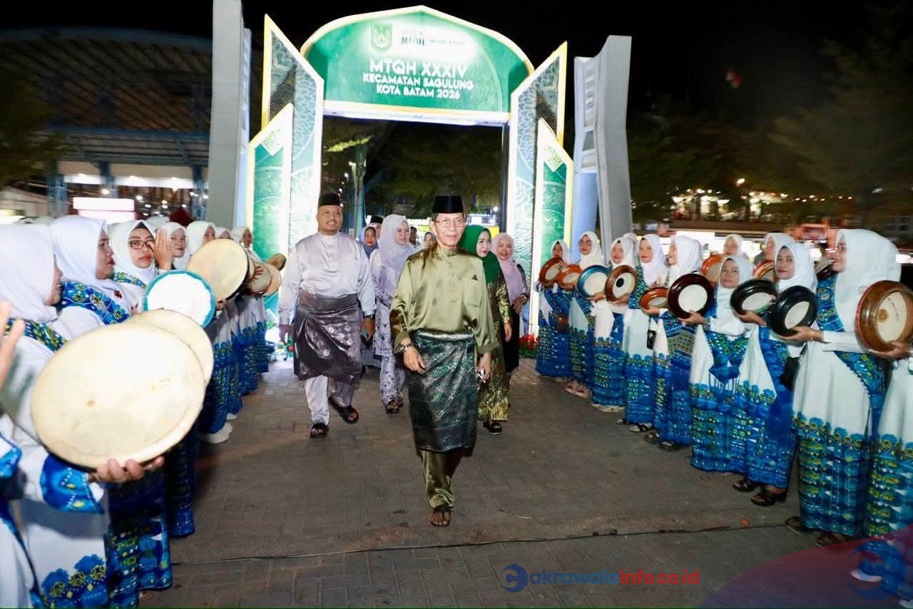 CAKRAWALAINFO.CO.ID, BATAM — Wali Kota Batam, Amsakar Achmad, membuka Musabaqah Tilawatil Qur’an dan Hadits (MTQH) XXXIV Tingkat Kecamatan Sagulung di Alun-alun SP Plaza, Sagulung, Selasa (10/2/2026) malam. Pembukaan MTQH berlangsung semarak, diawali penampilan marching band, dilanjutkan atraksi kompang dari ibu-ibu Majelis Taklim yang memukau tamu undangan.