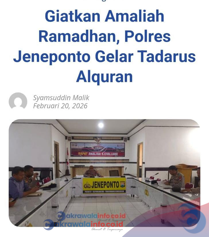 CAKRAWALAINFO.CO.ID, JENEPONTO — Dalam rangka meningkatkan amalan di bulan suci ramadhan, Polres Jeneponto menggelar Tadarus Alquran, kegiatan ini dilaksanakan setiap hari setelah apel pagi yang berlangsung selama kurang lebih 1 jam berlangsung, selama bulan suci ramadhan dalam rangka meningkatkan iman dan taqwa serta mengejar nilai-nilai amalan.