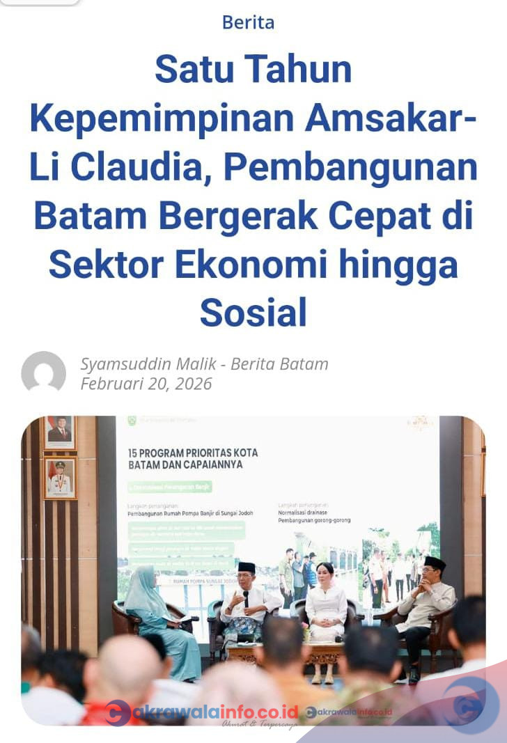 CAKRAWALAINFO.CO.ID, BATAM – Wali Kota Batam, Amsakar Achmad, bersama Wakil Wali Kota Batam, Li Claudia Chandra, genap satahun memimpin Kota Batam sejak dilantik Presiden Prabowo Subianto pada 20 Februari 2025 lalu.