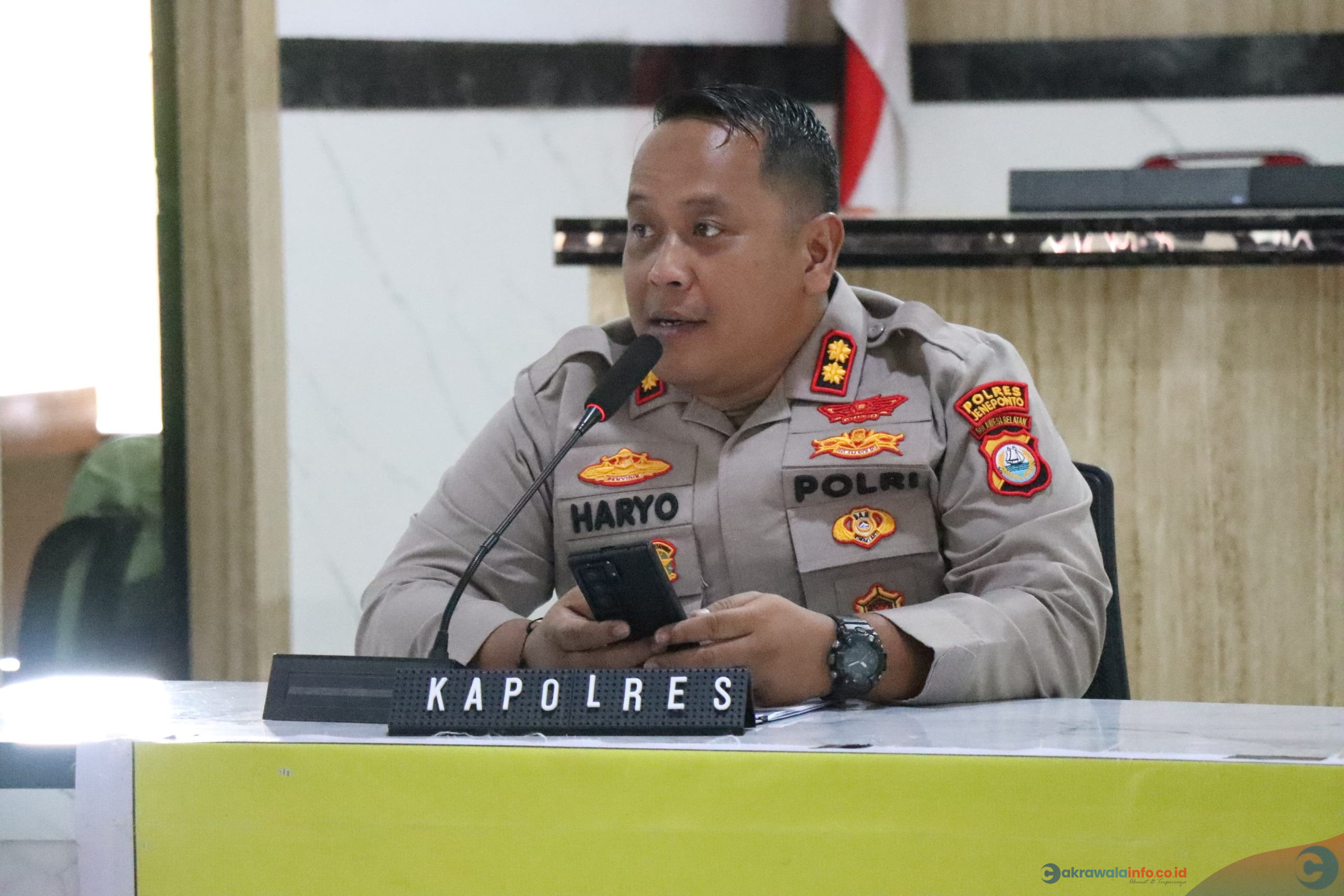 CAKRAWALAINFO,CO.ID, JENEPONTO – Kepolisian Resor (Polres) Jeneponto menggelar kegiatan Jam Pimpinan yang dipimpin langsung oleh Kapolres Jeneponto, AKBP Haryo Basuki, S.I.K., M.H. Kegiatan tersebut berlangsung pada hari Selasa, tanggal 24 Februari 2026, bertempat di Aula Lantai 2 Polres Jeneponto Sulawesi Selatan (24/2/2026).