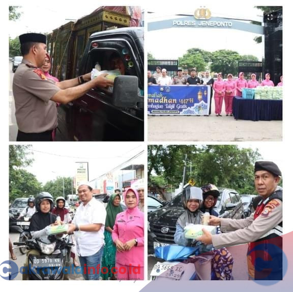 “Kegiatan ini adalah wujud kebersamaan dan kepedulian Polres Jeneponto kepada masyarakat, khususnya di bulan yang penuh berkah ini. Semoga apa yang kita lakukan dapat bermanfaat dan membawa keberkahan bagi kita semua,” ujar AKP Bakri.