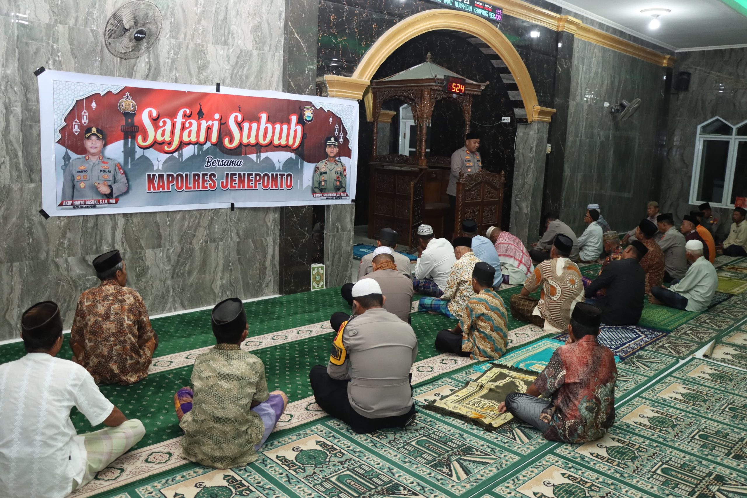 CAKRAWALAINFO.CO.ID, JENEPONTO – Dalam rangka mempererat tali silaturahmi dan menciptakan situasi keamanan dan ketertiban masyarakat (Kamtibmas) yang kondusif, Kapolres Jeneponto AKBP Haryo Basuki, S.I.K., M.H. melaksanakan kegiatan Safari Subuh di Kampung Beru, Desa Bulu Loe, Kecamatan Turatea, Kabupaten Jeneponto, pada Selasa dini hari (7/4/2026).