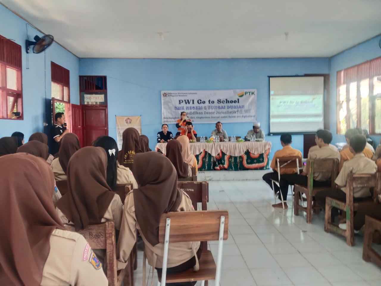 CAKRAWALAINFO.CO.ID, KOTABARU – Kolaborasi Persatuan Wartawan Indonesia (PWI) Kabupaten Kotabaru bersama PT Pelsart Tambang Kencana (PTK) terus diperkuat dalam mendukung peningkatan kualitas pendidikan di wilayah pedalaman. Salah satunya melalui program *PWI Go To School 2026* yang digelar di SMKN 1 Sungai Durian, Jumat (24/4/2026).